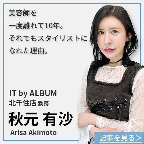 アカデミーで学んだ技術を活かし、IT by ALBUMでスタイリストデビュー。フリーでの入客も多いので、安心して美容師としての秒無に専念することができます。
